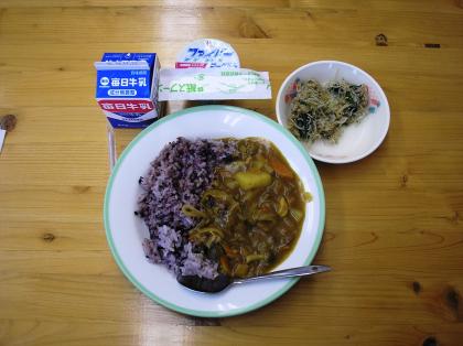 11月14日 かきとひねどりのカレーライス、 だいこんとみずなのじゃこあえ、ヨーグルト