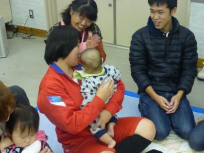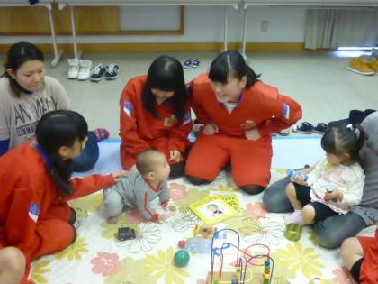 女の子は本領発揮! 一方、意外と男子も上手に接していました。
