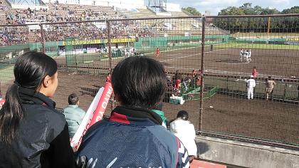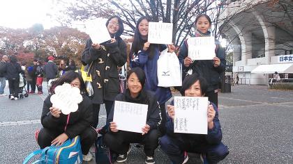 ソフトボール部 公開日 2014/11/16 更新日 2014/11/16 学校情報 11月15日(土)京都府わかさスタジアムにて、日本リーグ女子ソフトボールの決勝トーナメントがありました。本校のソフトボール部1、2年の6名も合同チームの隅田中学校と一緒に試合観戦に行きました。 間近で日本トップレベルのプレーを見ることできいい経験になりました。 試合後は、選手と写真を撮らせて貰ったり、憧れの選手からサインも貰いました。