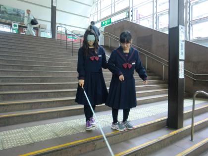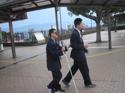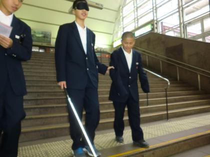 本日1年B組と1年C組が、南海林間田園都市駅から御幸辻駅まで、白杖を使った、乗車体験をしました。