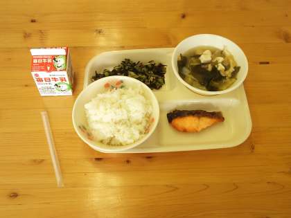 7月3日(金) ごはん、牛乳、さけのしおやき、ひじきとえだまめのおかかあえ、みそしる