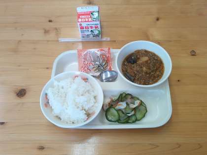7月6日(月) ごはん、牛乳、マーボーナス、ばいにくあえ、アーモンドミニフィッシュ