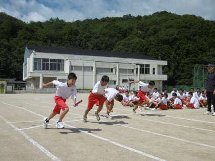 芝先生からバトンパスについての説明を受けた後に練習をしました。