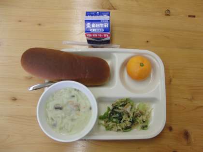 本日の給食 公開日 2015/12/03 更新日 2015/12/03 学校情報 12月3日(木) こくとうパン、牛乳、きのことさつまいものクリームシチュー、あさりとやさいのごまドレッシング、みかん ごちそうさまでした。