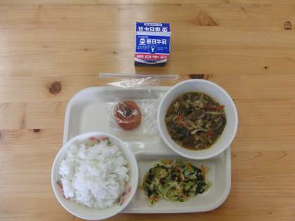 本日の給食 公開日 2015/12/04 更新日 2015/12/04 学校情報 12月4日(金) ごはん、ぎゅうにくときりぼしだいこんのあまからに、ちくわのみそドレッシング、あんぽがき ごちそうさまでした。