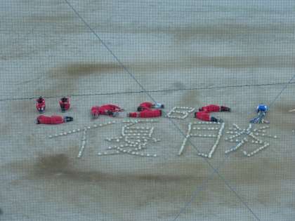 『(^^)KSBC!優勝』の文字がグランドに!