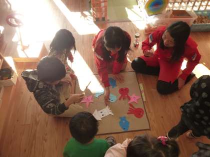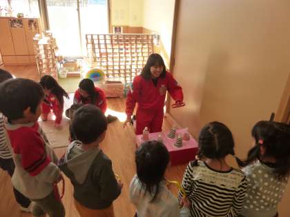 三石保育園さんにおじゃましました。手作りおもちゃで楽しそうに遊んでいます。みんな優しい良い笑顔でした。