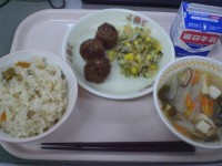 本日のメニューは 焼き栗コロッケ ビーンズサラダ 豚汁 ご飯 牛乳 です。 今日...