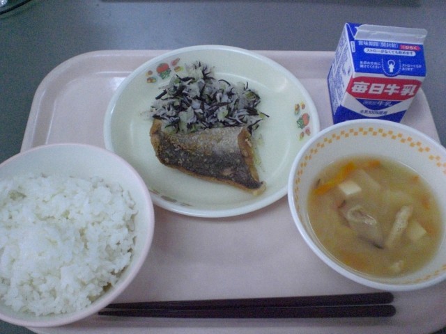 今日の給食 公開日 2025/10/15 更新日 2025/10/15 今日の給食 本日のメニューは メルルーサのごま醤油だれ じゃこと野菜の塩ドレあえ ジャガイモの味噌汁 ご飯 牛乳 です。 今日から体育祭の全体練習が始まります。しっかり食べて頑張ろう! いただきます! いいね(1)