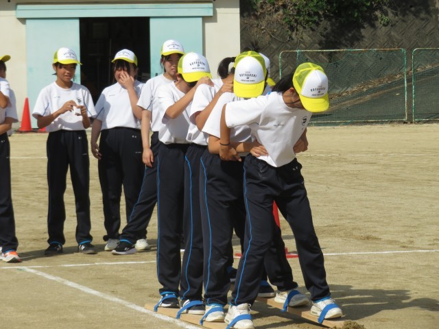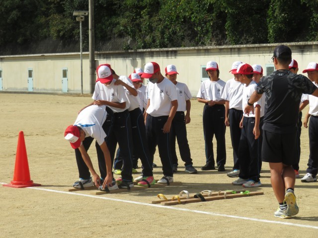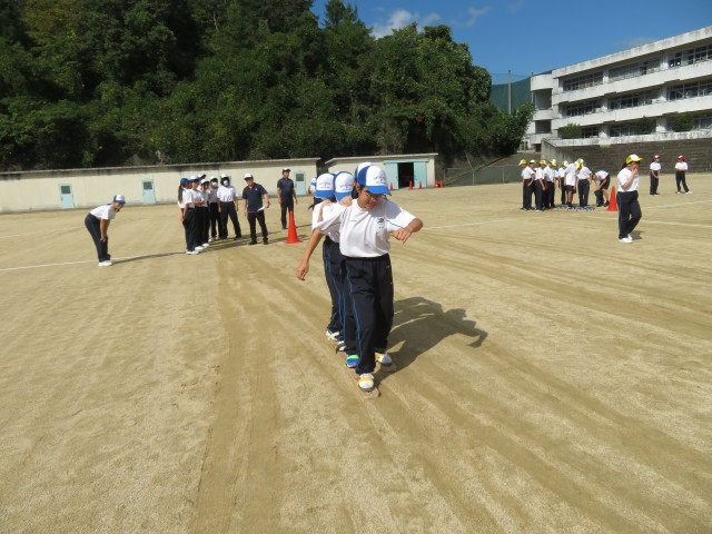 1年生の学年練習では、ムカデ競争の練習をしました。