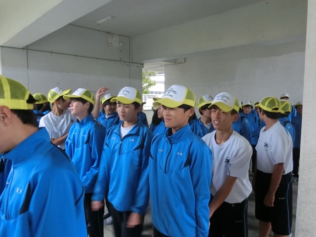 本日は雨天のため、校内にて行進の練習を各ブロックに分かれて行いました。