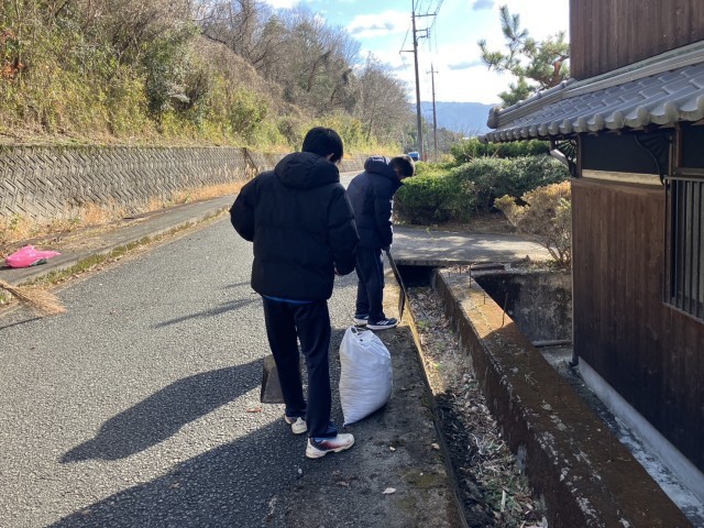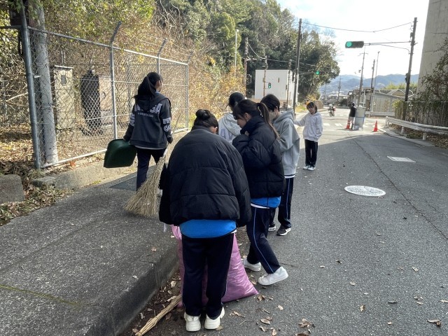 地域の人たちや自分たちの通学路で使う道がきれいになるように、一生懸命に掃除をしました。