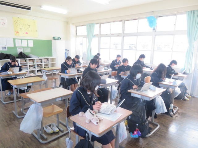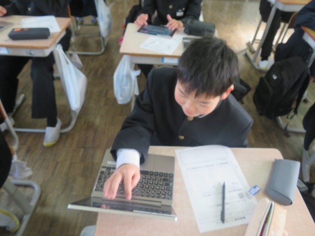 本日2限目に進路学習を行いました。タブレットを使って適性診断をし、診断結果をもとに自己分析を行いました。