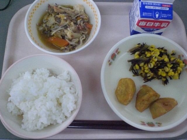 今日の給食 公開日 2026/01/19 更新日 2026/01/19 今日の給食 本日のメニューは すき焼き煮 海藻サラダ だいがくいも ご飯 牛乳です。 暖かいのも今日までのようです。明日から冷え込むようなので風邪をひかないように気を付けましょう。2年生は今週末に職場体験学習があります。体調を整えて取り組めるようにしよう! いただきます! いいね(0)