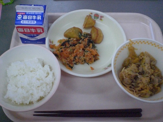 今日の給食 公開日 2026/03/02 更新日 2026/03/02 今日の給食 本日のメニューは 豚キムチいため ナムル だいがくいも ご飯 牛乳です。 3月になりました。3年生はいよいよ今週末に卒業式をむかえます。体調を整えて残る数日を大事に過ごしてください。 いただきます! いいね(3)