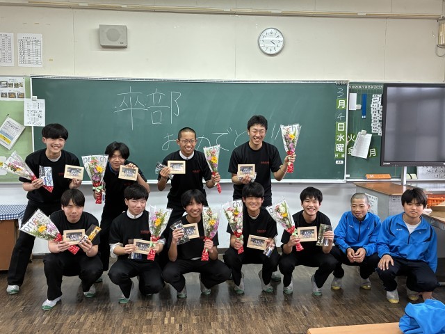 各部活動であつまる最後の時間です。1・2年生で、卒業する3年生のために色紙や手紙などたくさんの準備をして、お祝いをしました。