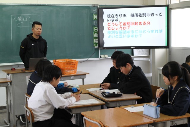 13日の6限目に同和教育の授業を行いました。授業では、差別や偏見について資料や話し合いを通して考え、「人権とは何か」「相手の立場に立って考えることの大切さ」について学びました。