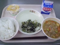 本日のメニューはビビンバ あげチヂミ ジョア です。さぁ、明日からいよいよ期末テ...