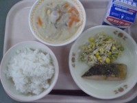 本日のメニューは タラの塩だれ焼き ポテトサラダ 具沢山味噌汁 ご飯 牛乳です。...