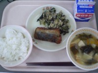 本日のメニューは 鰆の竜田揚げ しそひじき和え わかめと豆腐の味噌汁 ご飯 牛乳...