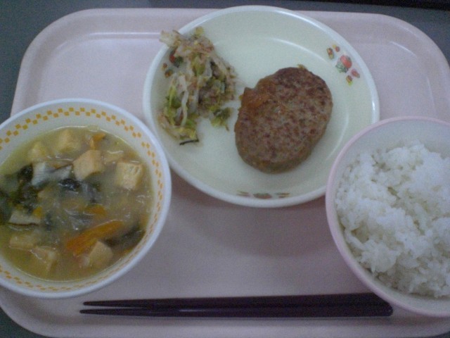 今日の給食は てりやきハンバーグ 梅おかか和え 玉ねぎと人参の味噌汁 ご飯 牛乳です。 今日から2,3年生のみんなは新年度がスタート!しっかり食べて今年も頑張ろう! いただきます!