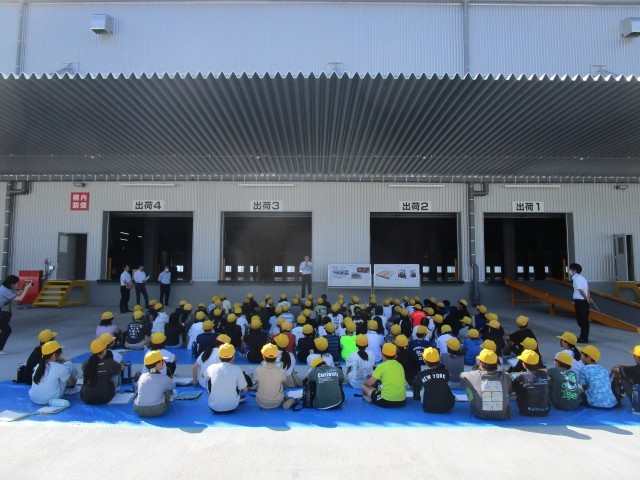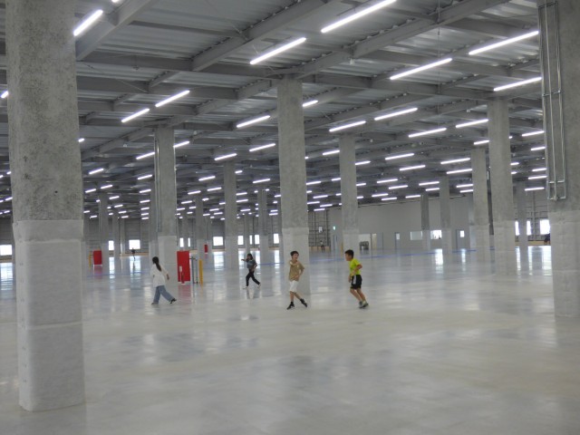 日本最大級の流通センターを見学させていただき、ホームセンターの物流や防災の取り組みについて教えていただきました。まだ荷物の入っていない、広い広い倉庫の中も自由に見学させてもらいました。