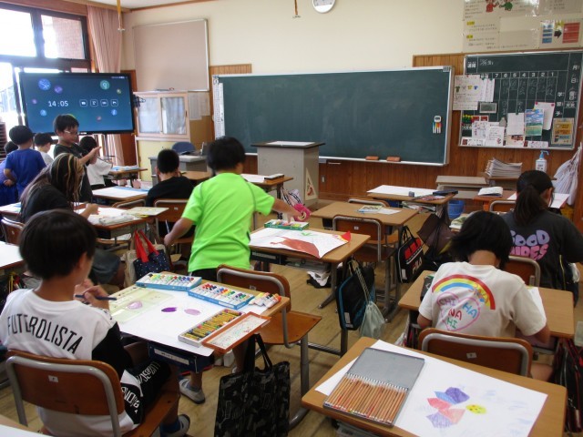 想像力を働かせて、画用紙いっぱいにそれぞれの花を咲かせています。