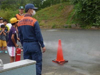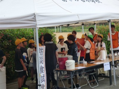 体育館の外では、煙体験・消火体験・防災食体験・給水体験を行いました。