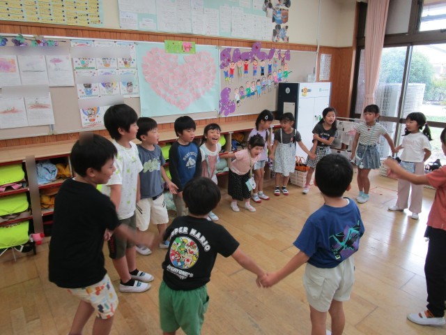 先々週から国語で「くじらぐも」の学習をしています。昨日は、かぎかっこの言葉をどんなふうに工夫して読むのかを考えました。友達の読み方と自分の読み方を比べたり、真似したりしながら読む練習をしました。授業の最後には、みんなで手を繋いで「天までとどけ、一、二、三。」と声をそろえて、楽しく活動をしました。