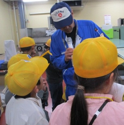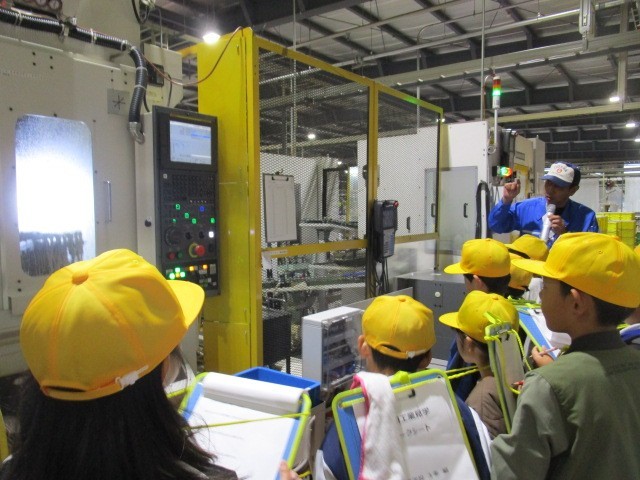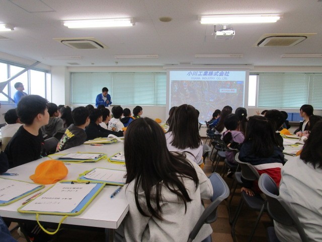 小川工業を訪問し、自動車部品の製造工程を見学しました。大型の機械が精密に動き、少しの誤差も許されない高い技術力に、児童たちは驚きの表情を見せていました。