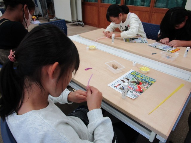 細かい作業が多いキーホルダーづくりでしたが、集中して作っていました。