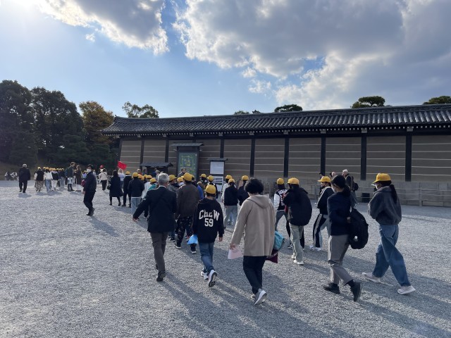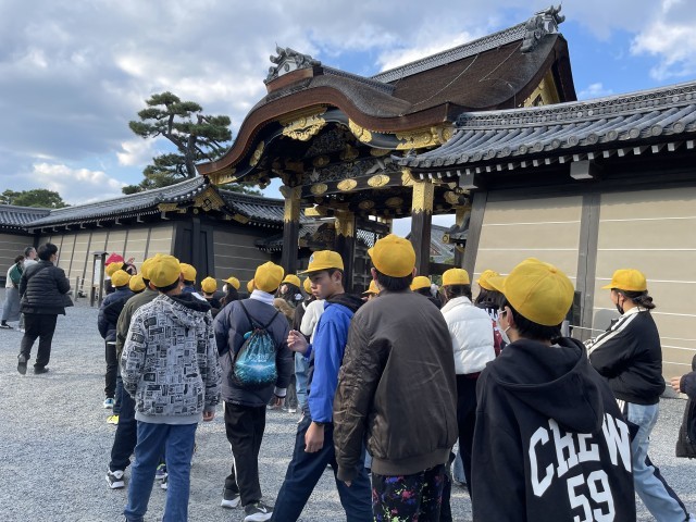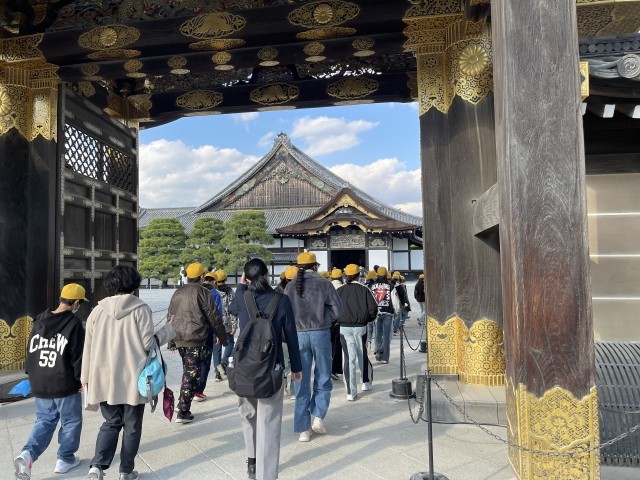 鶯張りの廊下を歩きながら、大政奉還の場面や豪華な襖絵や天井、欄間を見ました。