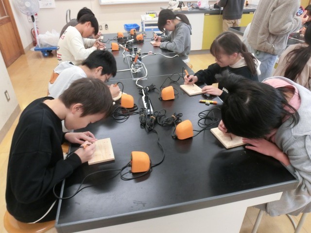 高野山での緑育学習の事後学習として、ウッドバーニングをしました。