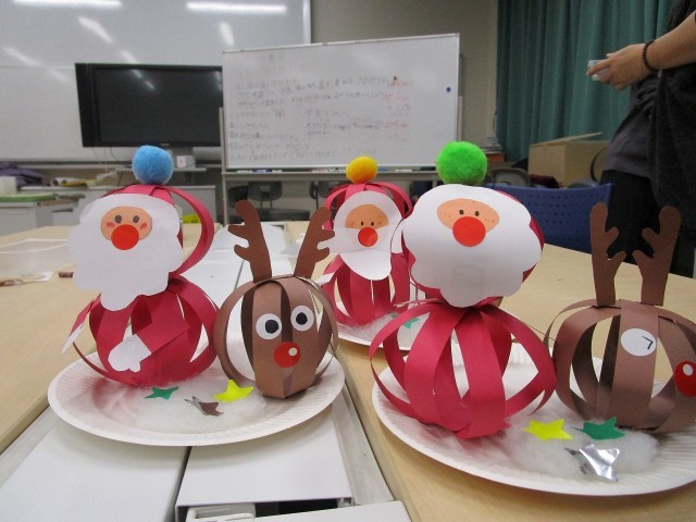 かわいいまるーいサンタとトナカイか出来上がりました。