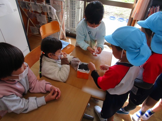 一生懸命準備してきたおもちゃで年長さんをおもてなしすることができました。ルールを説明したり、遊ぶ順番を決めてあげたり、遊び方が分からない子がいたら優しく教えてあげたりするお兄さん・お姉さnnとしての姿が見られました。