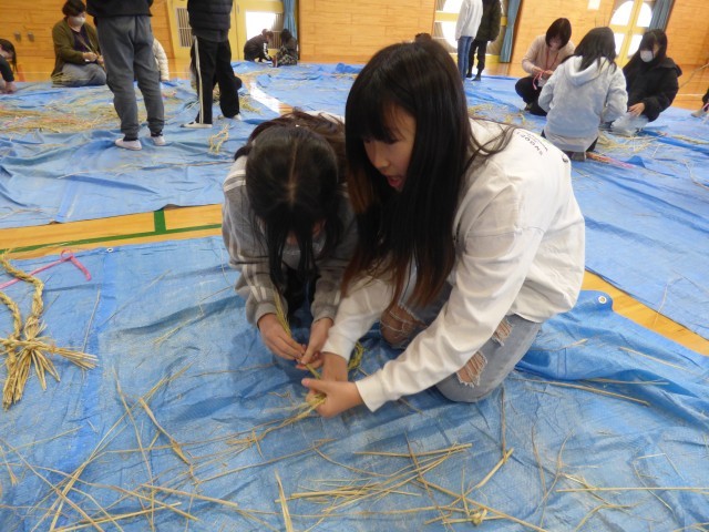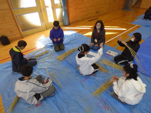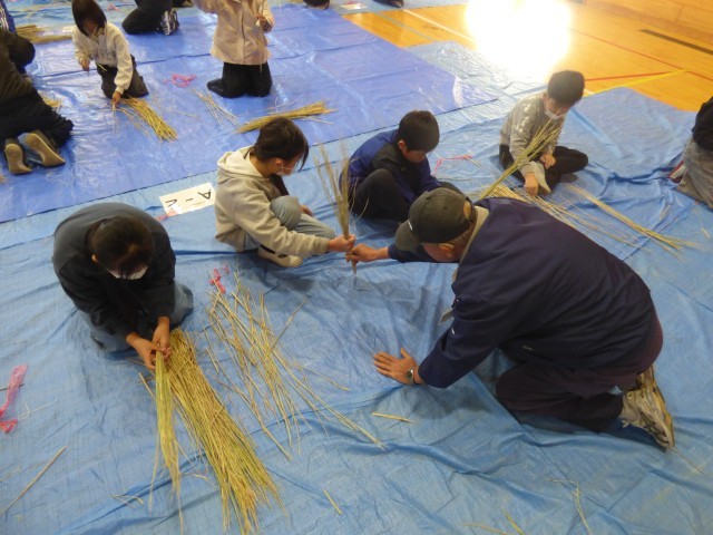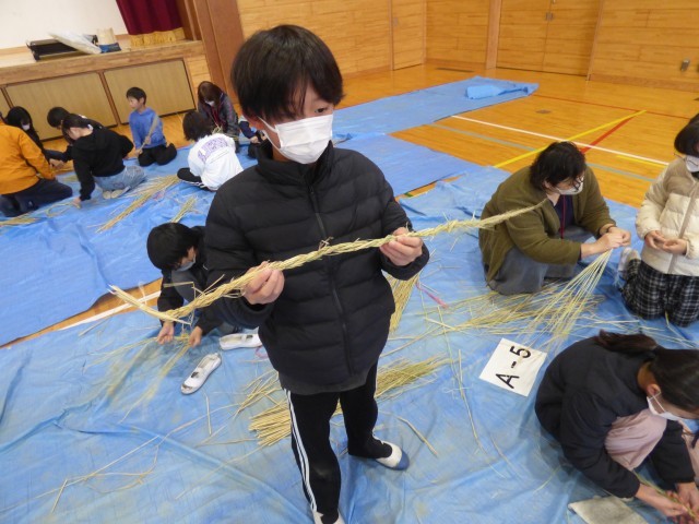 地域の皆さんと一緒に、5年生がしめ縄作りを体験しました。