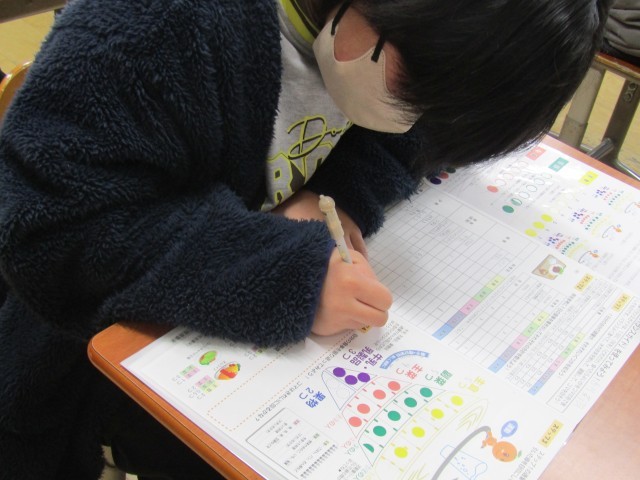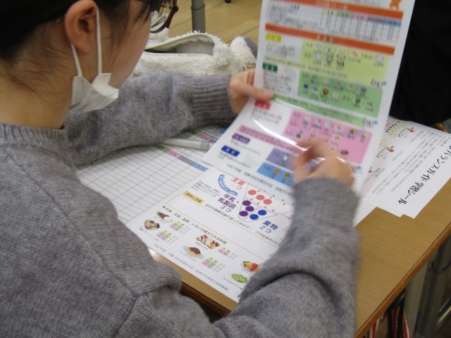 和歌山県が5年生に配布している「食事栄養バランスガイド」のファイルとプリントを使って、栄養と量のバランスが取れた食事 について学習しました。