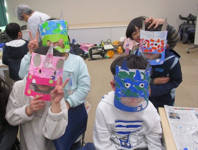 1年生は、「オニのお面を作って遊ぼう」でした。
