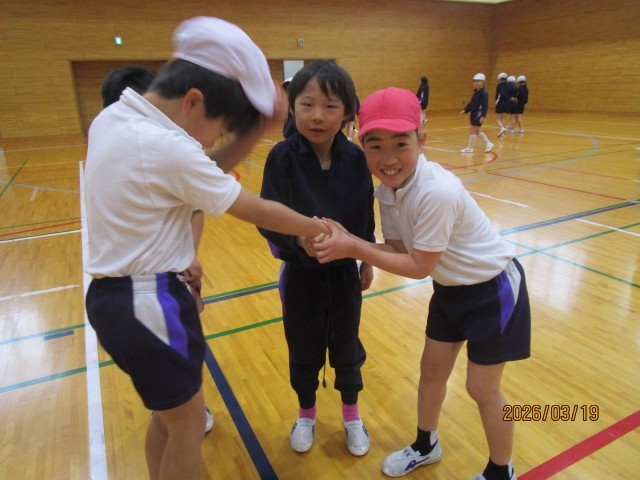 今日が2年生最後の体育の学習。3年生になったら、さらに素早く並び、みんなでなかよく力を合わせて、体育の学習に取り組んでいきましょう。