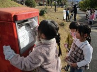 今日、3時間目に1年生A組とB組の合同で生活の勉強をしました。きれいなふくが出来上がったので、ふくを着て、一人ひとり前に出て、がんばったところを発表しました。友達の発表を聞いた後、よかったところや感想を出し合いました。そして、みんなで「さんぽ」の曲に合わせて躍りました。手話つきで素敵なダンスです。