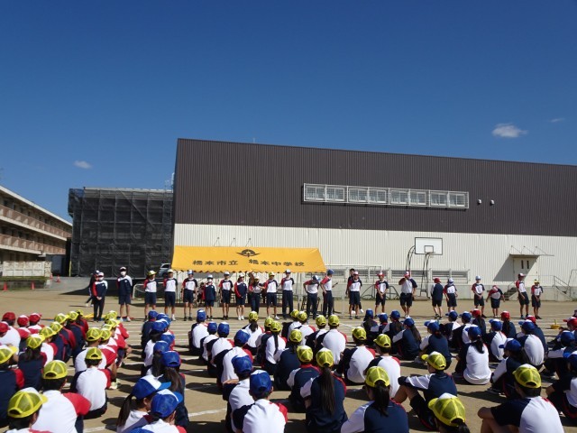 本日は、体育祭実行委員の紹介、結団式、開会式の練習を行いました。