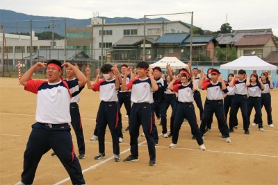 体育祭3年生学年種目① 公開日 2025/10/25 更新日 2025/10/25 3年生 合同体操の後、すぐに3年生の学年種目「竹取物語2025」が行われました。団長を中心に声を出し、気合いを入れました。さすが最上級生、白熱した戦いが繰り広げられました。 +6
