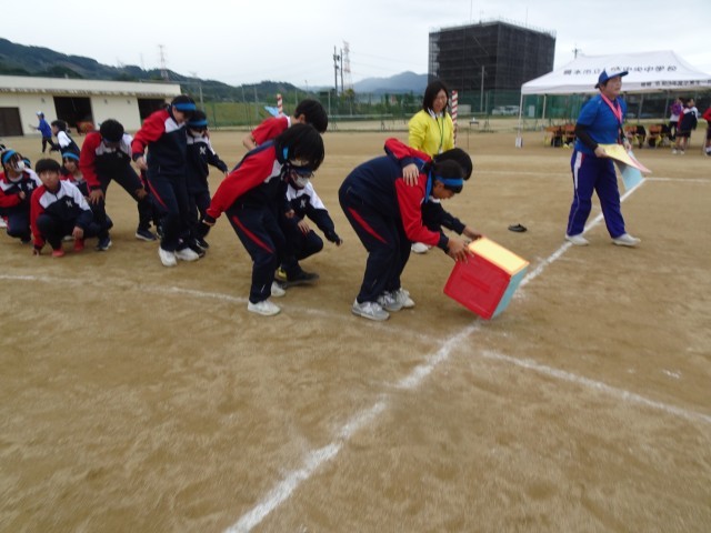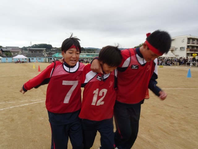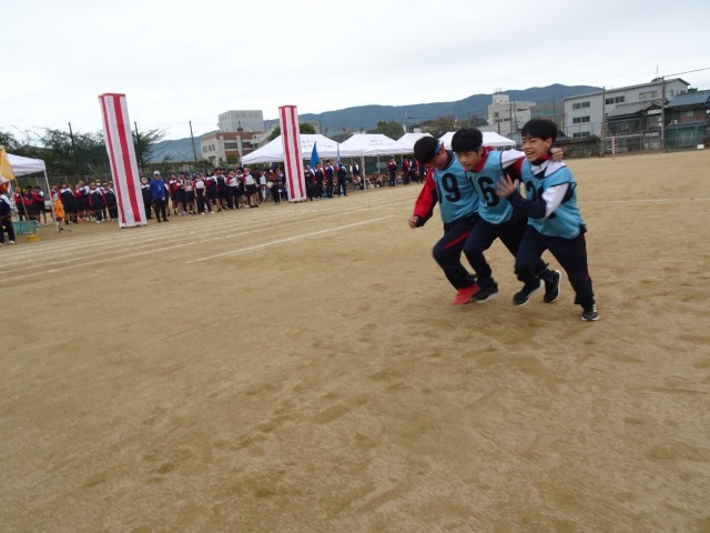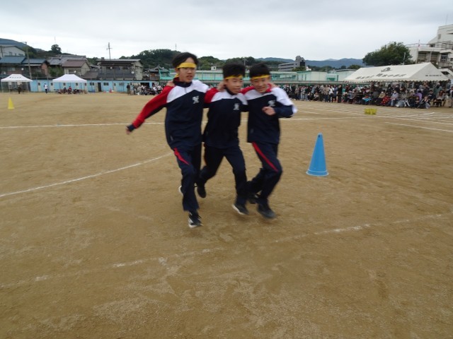 女子は二人三脚、男子は三人四脚でした。お互いの息を合わすのに少し難しさがありましたが、