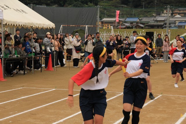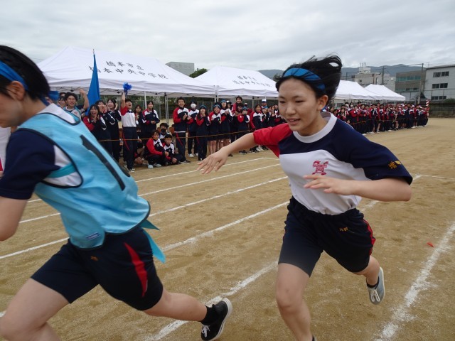 体育祭 女子選抜リレー 公開日 2025/10/25 更新日 2025/10/25 学校行事 プログラム11番、「女子選抜リレー」ラストを飾る各色組の100m×6名の選抜リレー。1年生から3年生でバトンをつなぎ、全力の走りを魅せてくれました。 +4