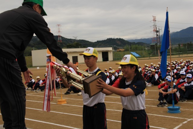 得点発表では、「赤組350点!青組390点!黄組410点!よって優勝は黄組です!」の発表と共に、歓声がわきあがり、お互いの頑張りをたたえ合う拍手が鳴りひびきました。