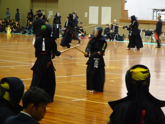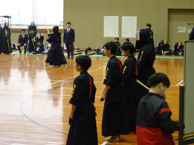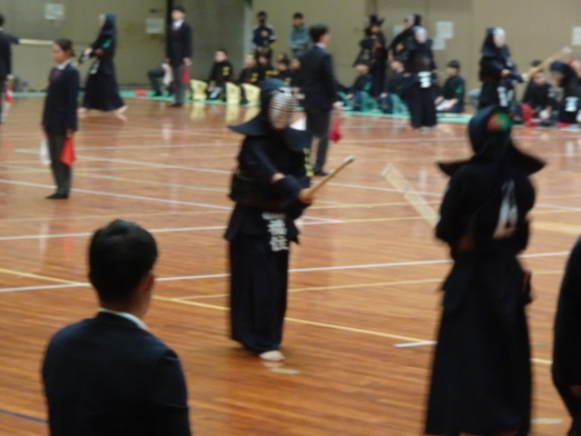 午前中に男子個人戦、午後に男子団体戦に出場しました。個人戦では、一本をとる喜びをあらためて感じた選手、団体戦では今日がデビュー戦の選手、積極的に相手に技を仕掛けた選手、小学校のころから互角の対戦をしてきた相手との試合に立ち向かった選手など、さまざまな思いを胸に必死に戦った一日でした。