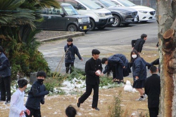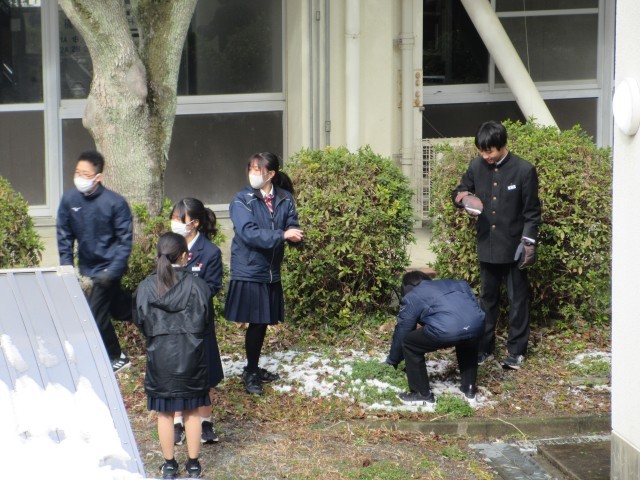 今日の昼休みは、溶けかけた雪で遊んでいる様子が見られました。